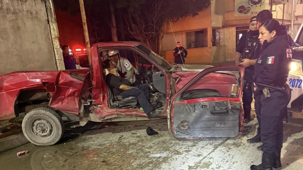 El percance sucedió alrededor de las 2 de la mañana, cuando una camioneta Chevrolet color guinda cruzó el semáforo en rojo en la intersección con la avenida México e impactó de lleno el costado derecho de una Ford Ranger roja en la que viajaban dos profesores.