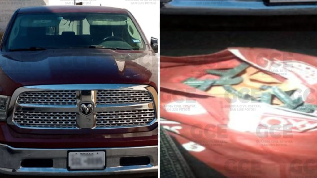 Cedral, S.L.P.-Fuerzas de seguridad de la Guardia Civil Estatal, localizaron una camioneta con reporte de robo en cuyo interior se descubrieron artefactos metálicos conocidos como “poncha llantas”.