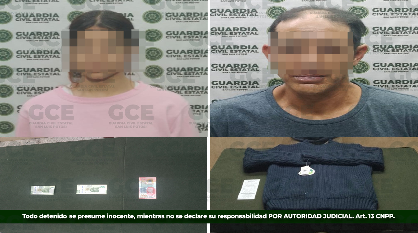 Detienen a un hombre y una mujer, presuntos ladrones de comercios en SLP