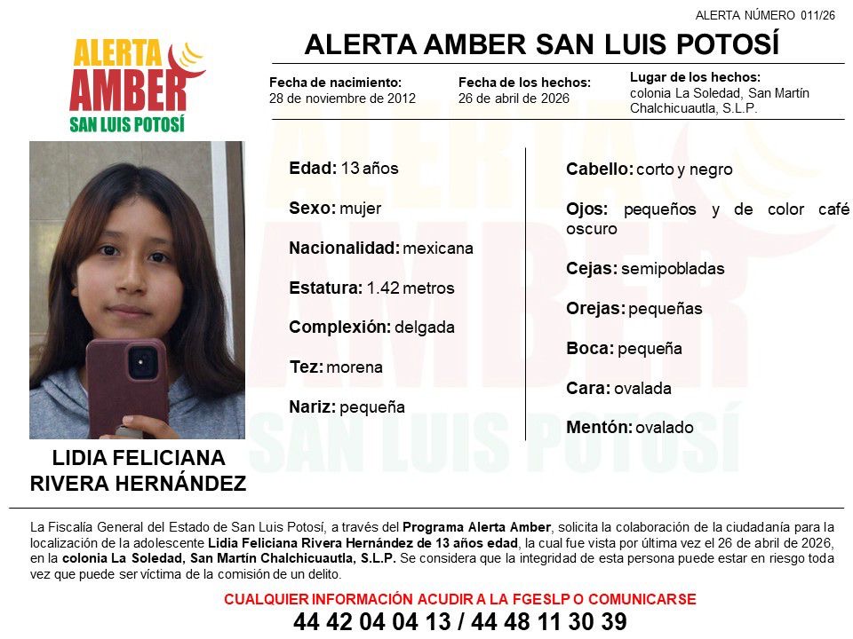 Activan Alerta Amber para localizar a adolescente de 13 años en San Martín Chalchicuautla