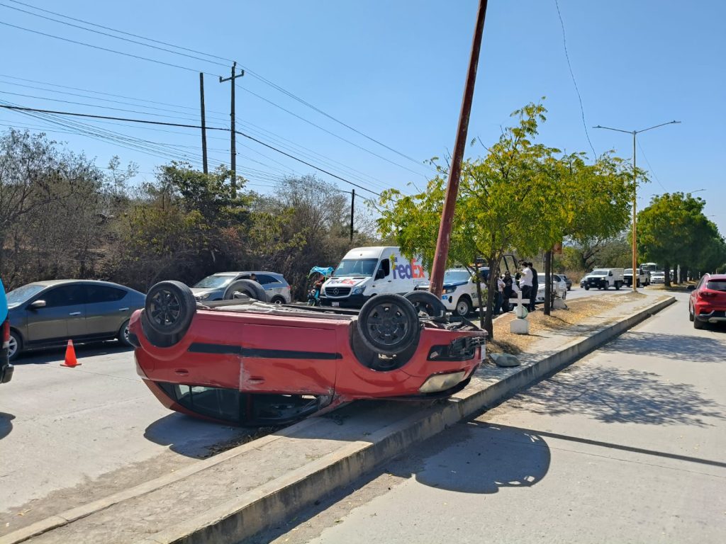 Una maniobra imprudente habría sido la causa de un accidente que dejó un vehículo volcado y a una mujer lesionada, en hechos ocurridos sobre la avenida Universidad, a la altura de la colonia Rafael Curiel.