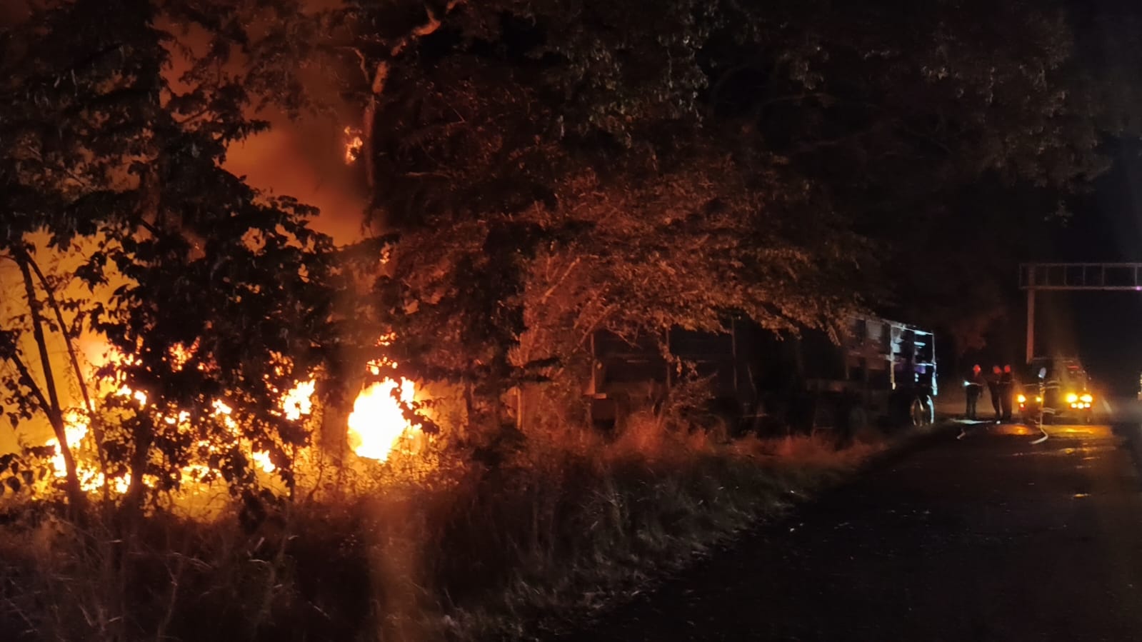 Tráiler se desliza solo, choca y arde en la libre Valles-Tampico