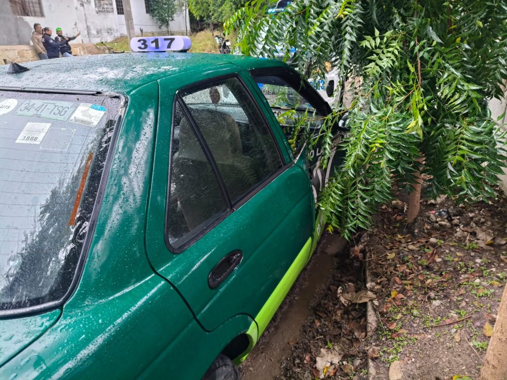 Testigos indicaron que la unidad implicada corresponde a un Nissan Tsuru color verde, con número económico 317, adscrito al sitio Las Águilas.