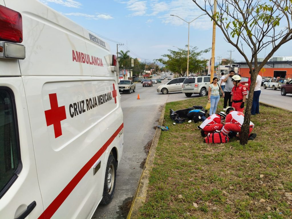 Paramédicos de la Cruz Roja arribaron para brindarle los primeros auxilios a la motociclista, quien posteriormente fue trasladada a un hospital para su valoración médica.