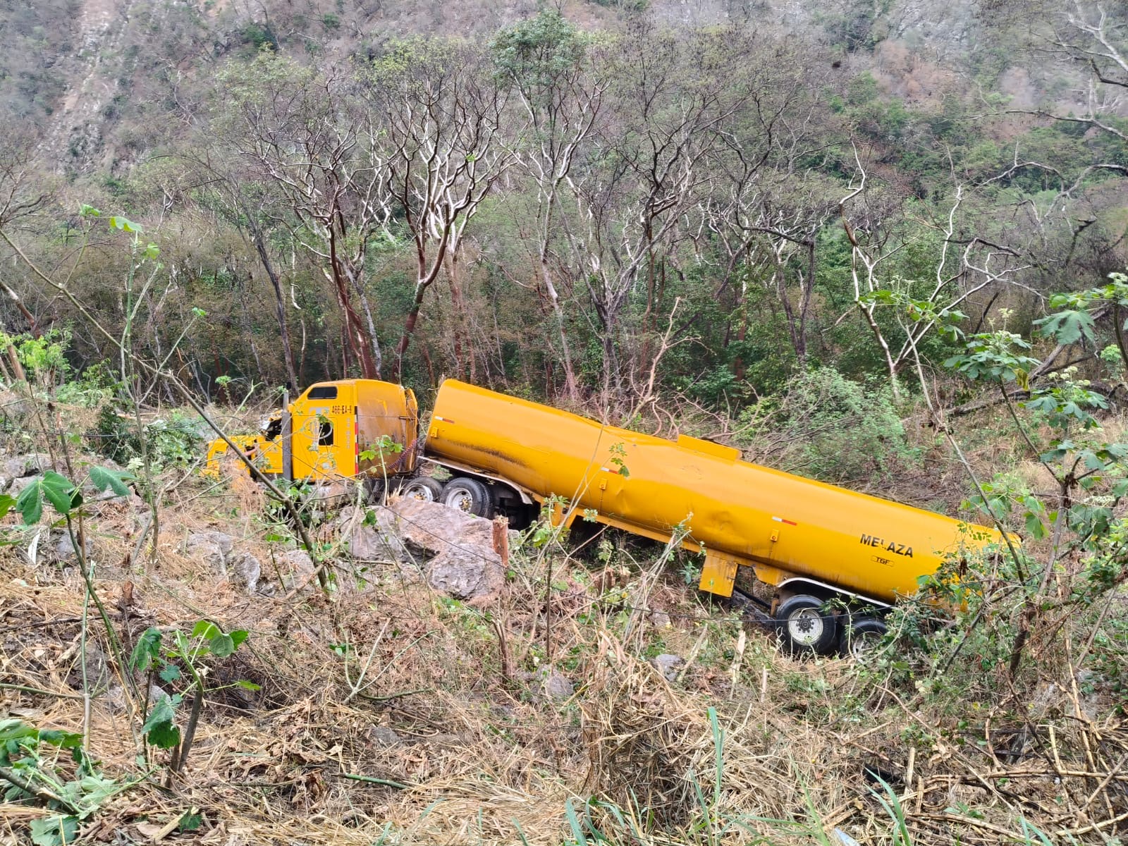 Se accidenta pipa en la carretera Valles–El Naranjo y termina en barranco