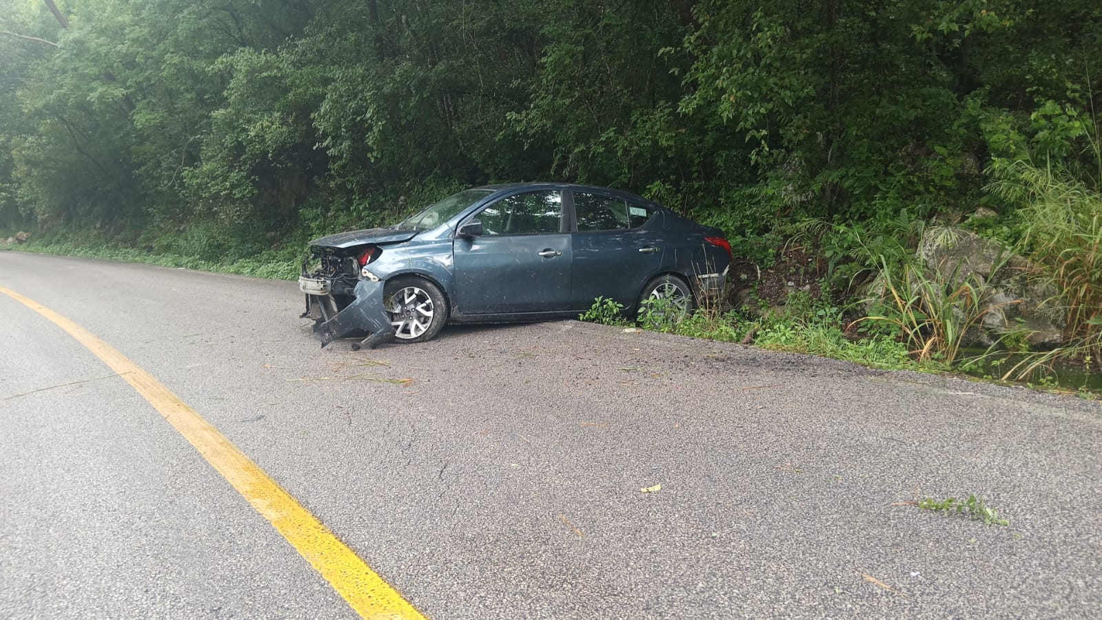 Nissan termina con cuantiosos daños al chocar contra un cerro en la libre Valles–Rioverde