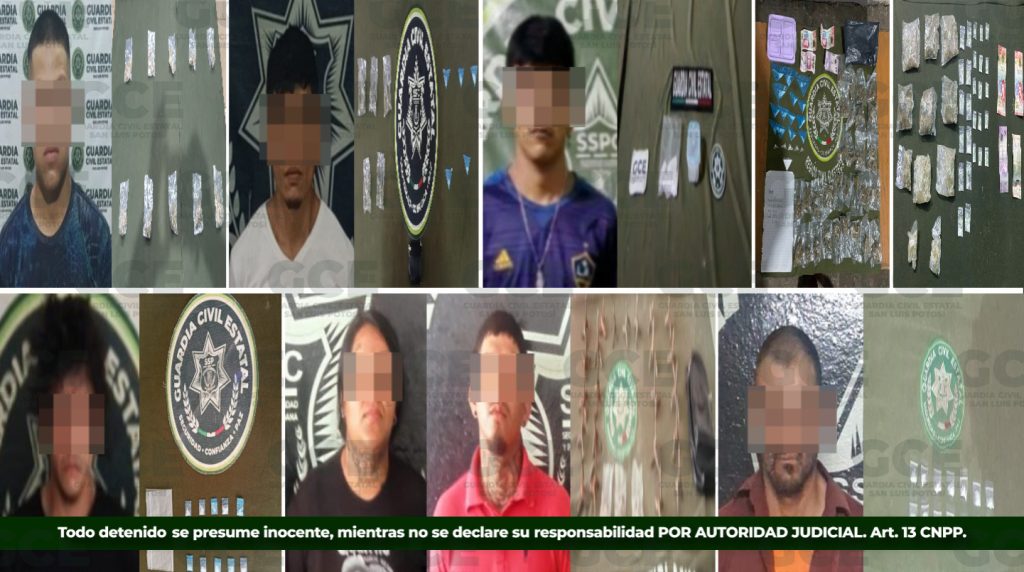 En Villa de Zaragoza, en coordinación con personal de la Secretaría de la Defensa Nacional (Sedena), fue detenido Felipe “N” de 20 años, en posesión de dosis de marihuana y a bordo de una motocicleta con reporte de robo. En Moctezuma, agentes estatales detuvieron a Luis “N” de 47 años con dosis de metanfetaminas, mientras que en Ébano fue asegurado Francisco “N” de 24 años, quien portaba un recipiente con droga conocida como “cristal”.