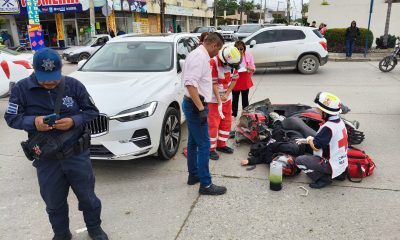 Motoneta impacta contra camioneta que salió sin precaución de la zona centro en Valles