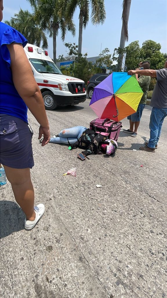 La afectada, identificada como Karen Rubí, de 27 años, cayó sobre el pavimento tras el choque, lo que generó la movilización de cuerpos de auxilio.