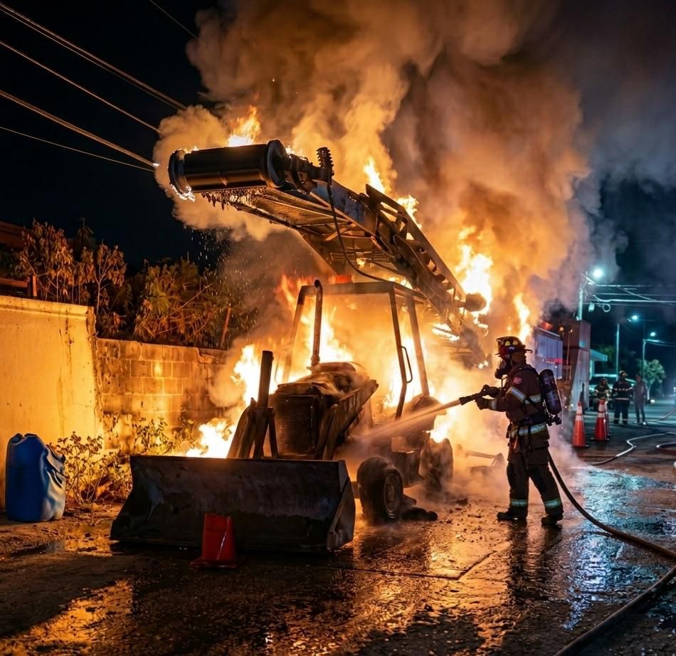 Siniestro en obra vial deja pérdidas totales en maquinaria en Tamuín