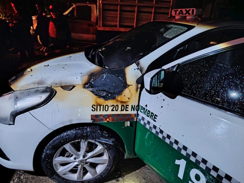 Un acto violento se registró durante las primeras horas de este jueves en la colonia 20 de Noviembre, donde un taxi fue incendiado de manera intencional mientras se encontraba estacionado dentro de una vivienda particular.