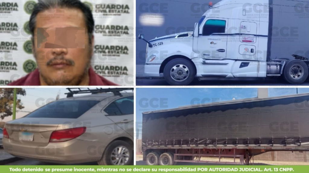 La dependencia informó que Oficiales de la GCE, recuperaron un tractocamión Kenworth, modelo 2020 en color blanco robado con violencia el 20/02/2026 en la Zona Industrial, y un remolque de transporte de carga modelo 2011 en color azul con reporte de robo sin violencia el 05/02/2026 en Cándido Navarro, Soledad de Graciano Sánchez.