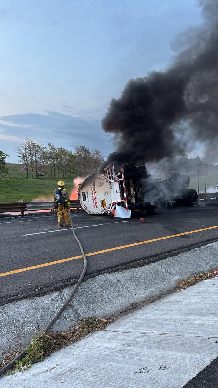 Se desprende pipa de tráiler y termina calcinada tras volcadura en el libramiento