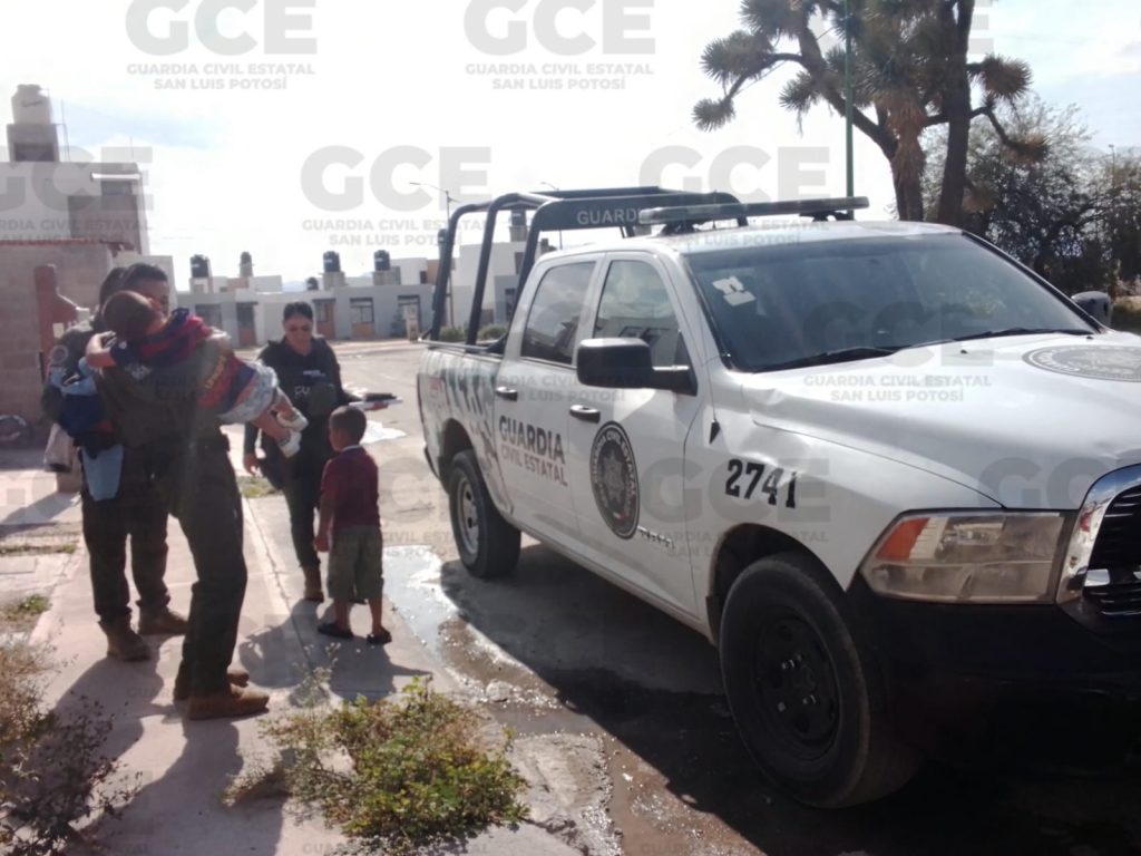 Agentes de la Guardia Civil Estatal, se trasladaron hacia el fraccionamiento El Manantial, perteneciente al municipio de Villa de Pozos, sitio donde reportaban que dos niños se encontraban solos y en situación de peligro.