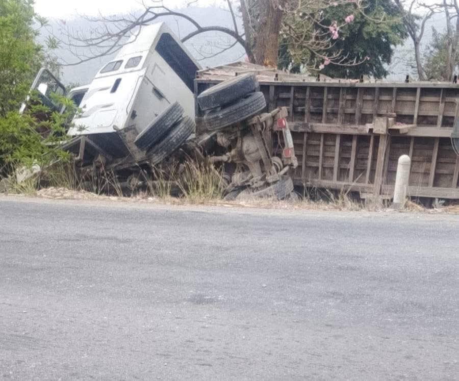 Tráiler sin carga termina fuera de la carretera en Estación 500