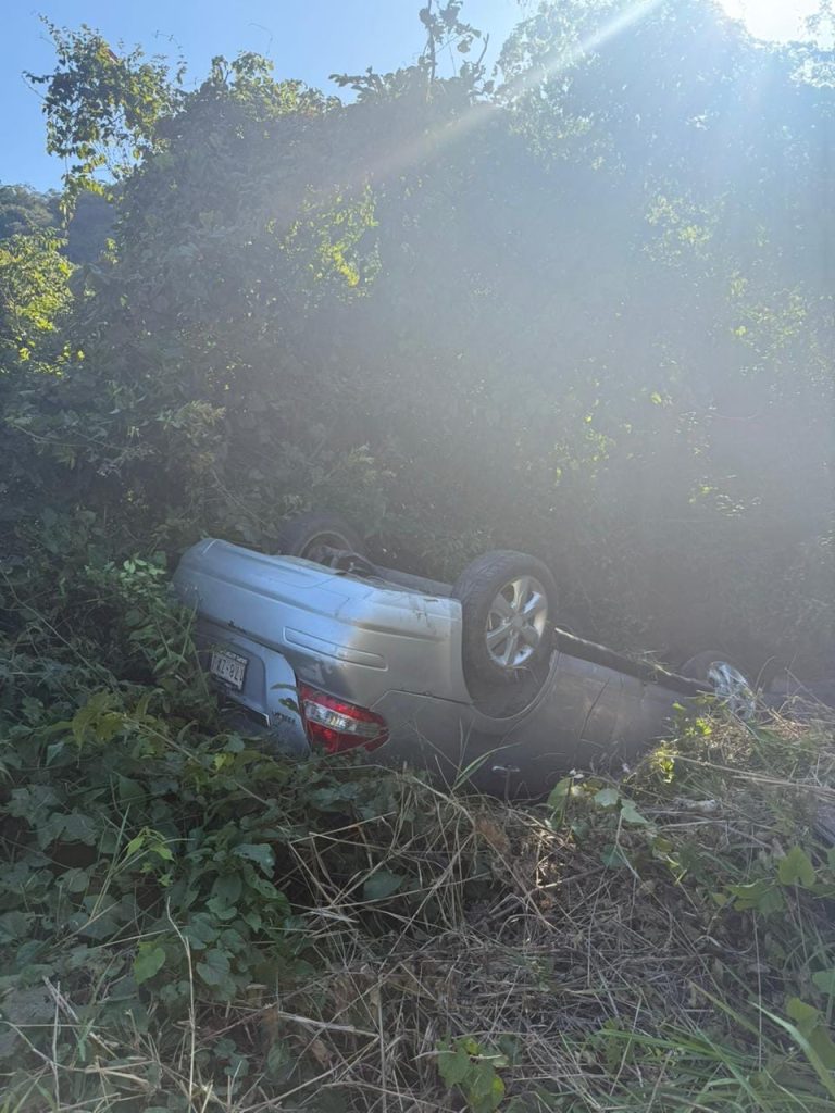 Un automovilista sufrió una aparatosa volcadura la tarde de este viernes sobre la carretera libre Valles–Rioverde, luego de perder el control de su unidad al circular por una zona de curvas.