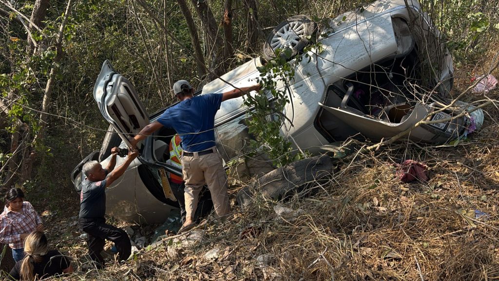 El hecho se registró en el tramo cercano a la curva de La Calandria, cuando un automóvil color gris que se dirigía hacia Ciudad Valles salió de la carpeta asfáltica y cayó a un desnivel, donde terminó con las llantas hacia arriba.