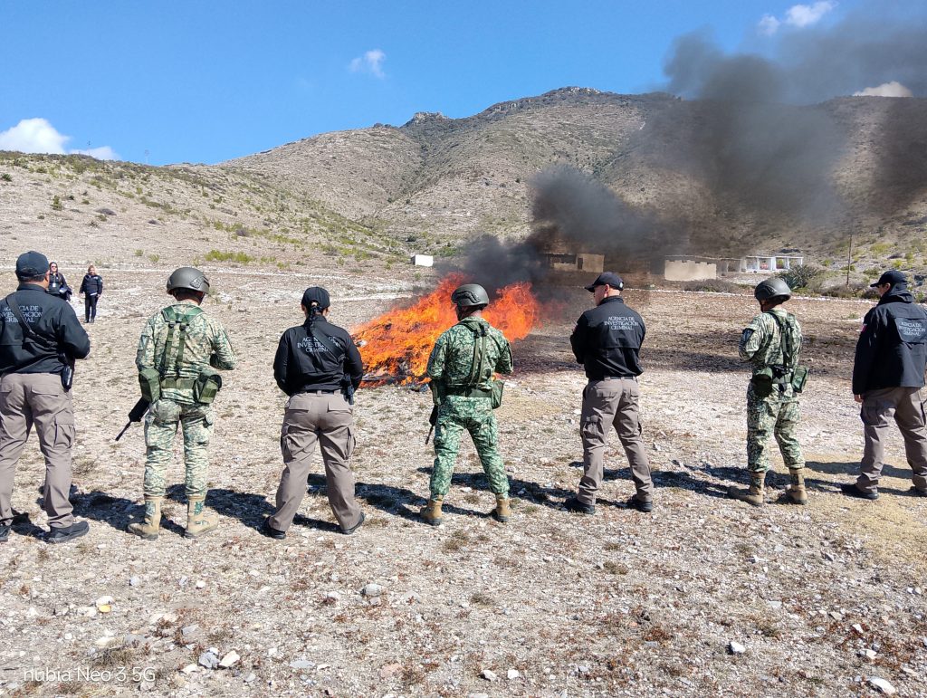 El acto de incineración fue encabezado por el fiscal federal en el estado de San Luis Potosí, con la participación de autoridades federales y elementos de la Secretaría de la Defensa Nacional (Defensa), lo que reafirma la coordinación institucional y el respaldo del Gobierno de México a las acciones que se realizan en San Luis Potosí para garantizar el Estado de Derecho.
