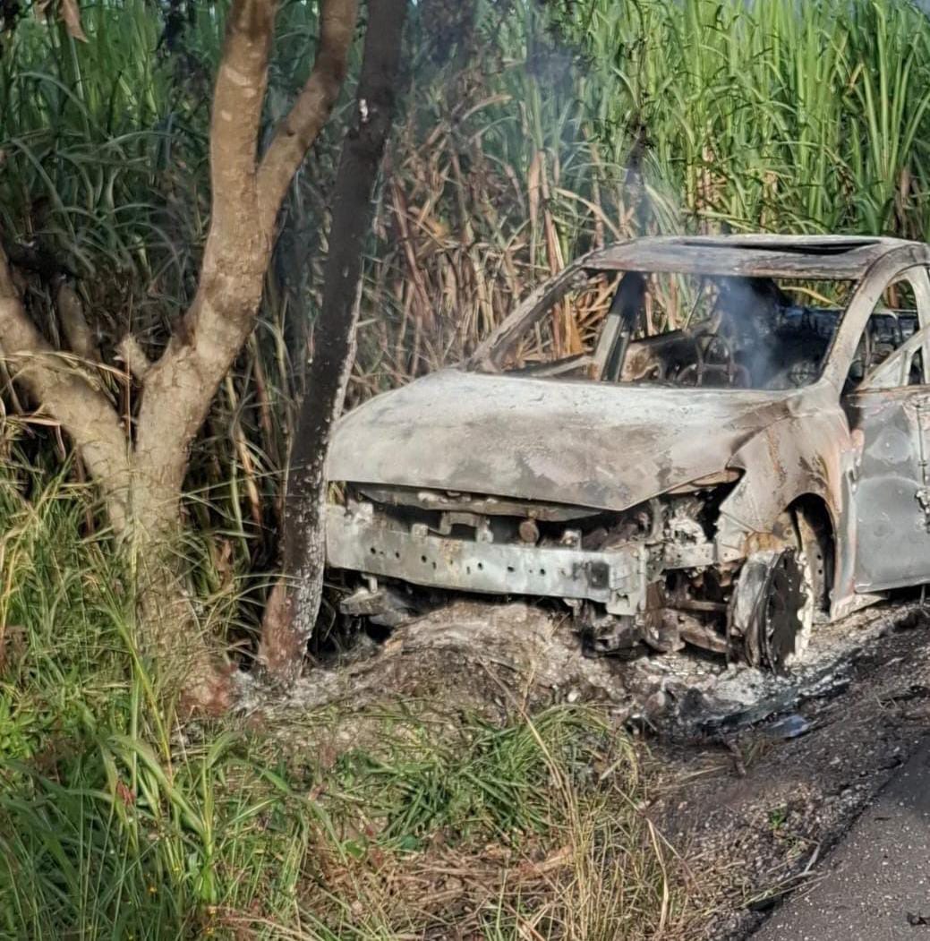 Se incendia auto tras salir del camino en Tamasopo; una mujer fallece y su pareja queda grave