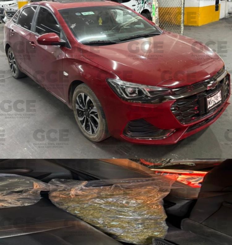 Aseguran vehículo presuntamente en estado de abandono, en su interior encontraron marihuana