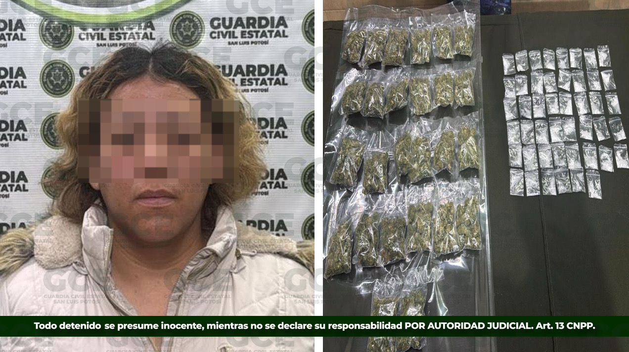 De inmediato le fue notificada su detención por su presunta responsabilidad en el delito contra la salud, por lo que fue trasladado a las instalaciones de la FGESLP quedando a disposición de la Unidad de Tramite Común con Detenido en donde se realizará lo conducente.