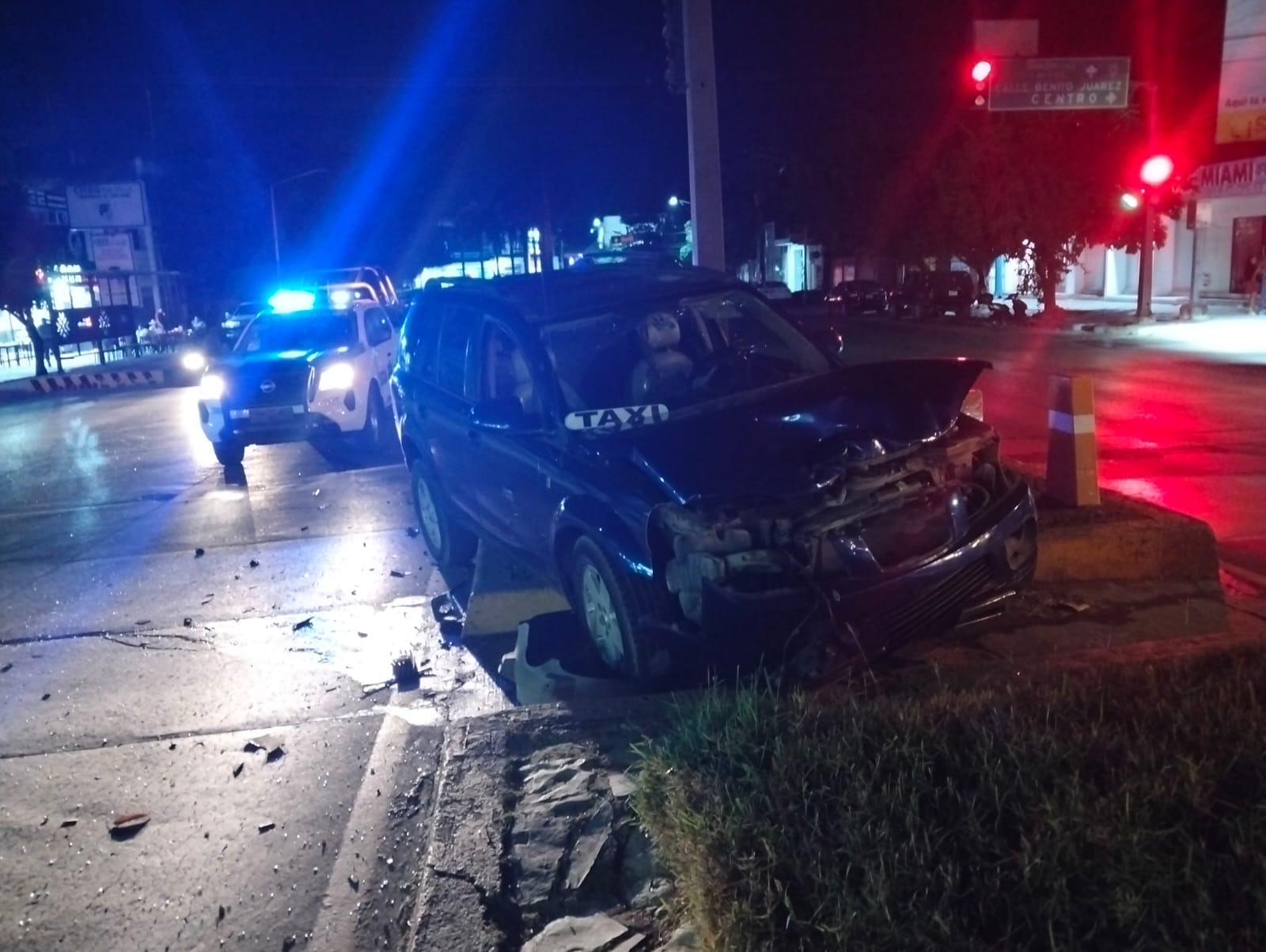 Una camioneta se pasó la luz roja de un semáforo y chocó contra un taxi en Ciudad Valles; el taxista resultó lesionado