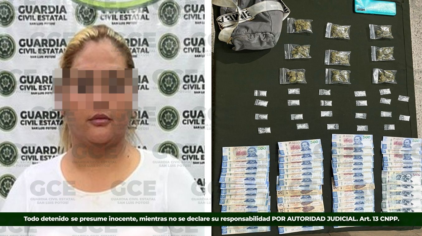 Una mujer fue detenida, presuntamente integrante de grupo criminal; le aseguran droga y dinero en efectivo