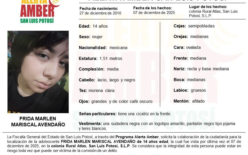 Esta persona tuvo contacto con sus familiares por última vez en la colonia Rural Atlas